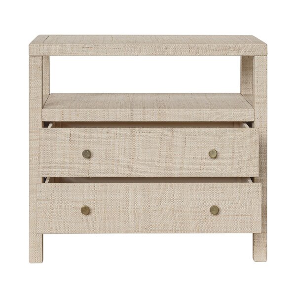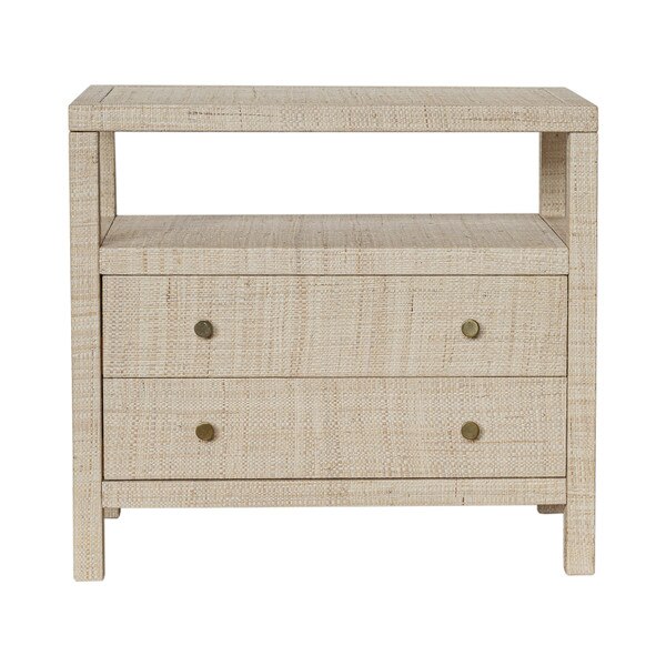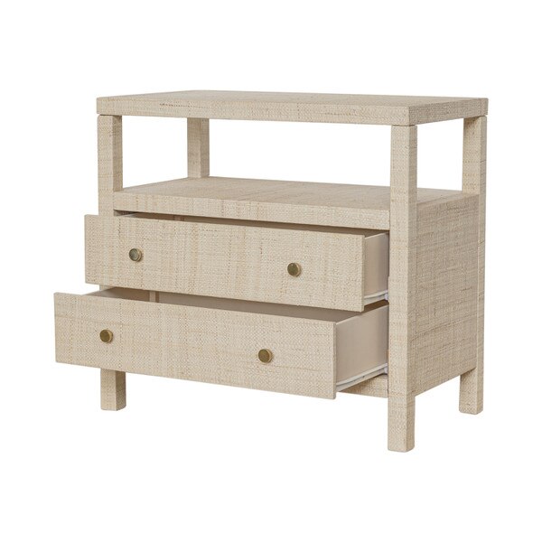 Paloma 2 Drawer Raffia Wrapped Night Stand with Shelf, 28"W, Natural