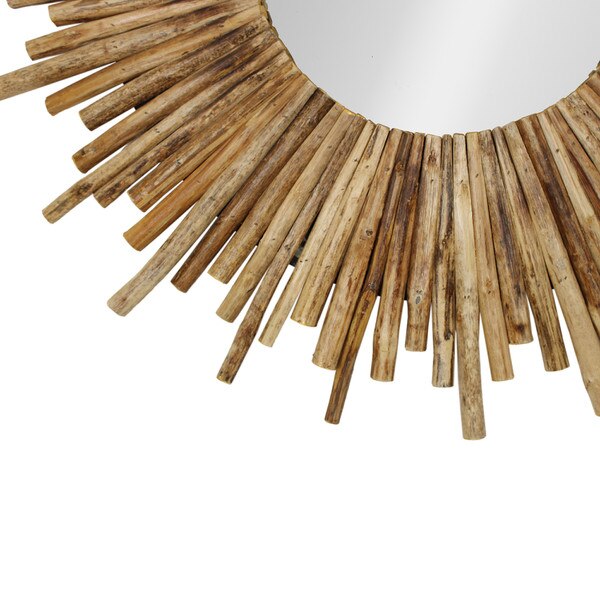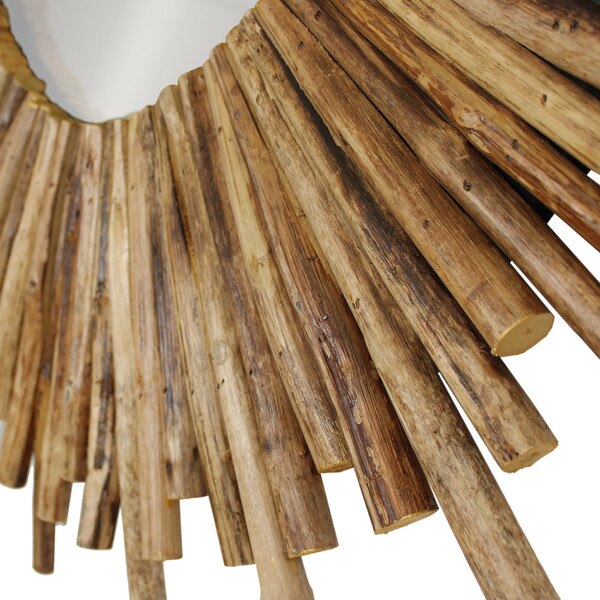 Pinit Twig Sunburst Mirror Quantity discounts available QuantityPrice SKU: OR-TG604 Twig Sunburst Mirror - Natural Log In for Pricing Request More InfoPrint Additional Info & FAQsAdditional Info & FAQsDimensions: 43 x 2 x 43 (WDH)Material(s): Teak Wood, GlassWeight: 16.98 lbsShippingShippingShip Method: LTLShipment Requires Pallet/LTL