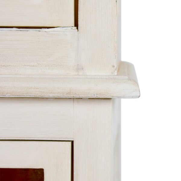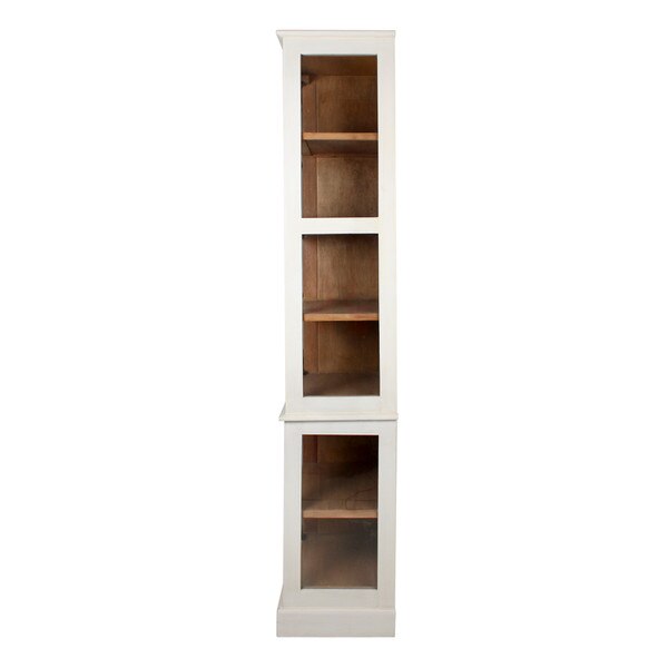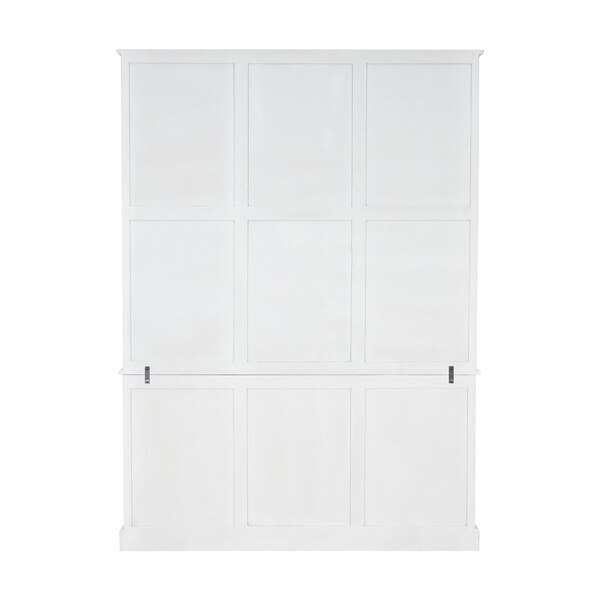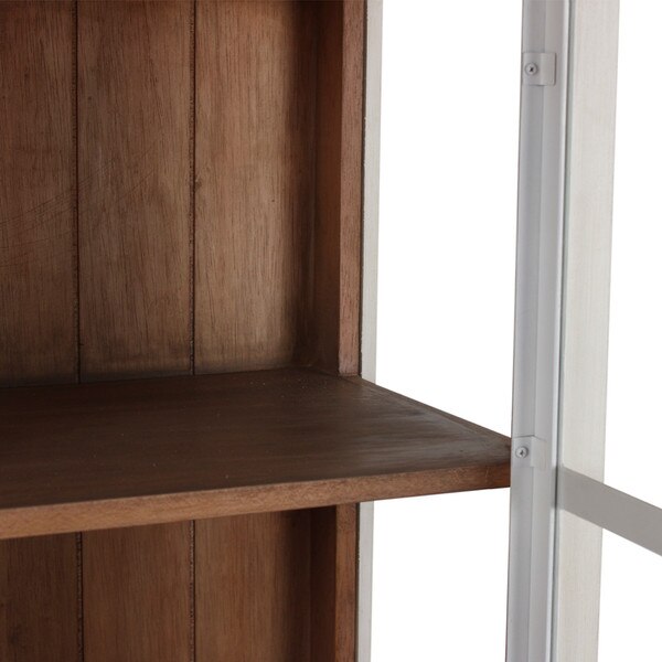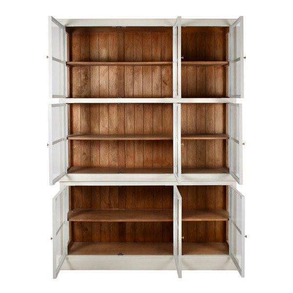 Crafted from wood kiln-dried Bayur wood, this cabinet makes a bold statement with a striking contrast between white and natural finishes. Featuring 6 fixed shelves for ample storage, it’s also available in a brown finish with white paneling for versatile styling.