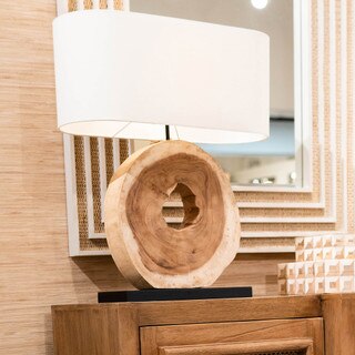 Marino Tiered Wood Geometric Carved Table Lamp With Tapered Lampshade, Brown