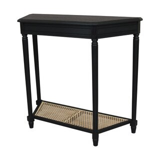 Lenora Demilune Console Table w/ Cane Shelf, Black/Natural